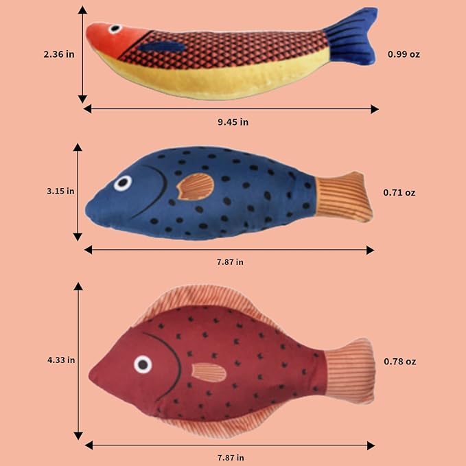 - 【Vibrant & Gift-Ready】 Available in three vibrant colors—blue, red, and orange—these toys are designed to instantly catch your cat’s eye. Measuring approximately 9.45 inches, each catnip fish toy is perfectly sized for cats of all breeds to grab, kick, and cuddle. Great for multi-cat homes or as a thoughtful gift for fellow cat lovers.