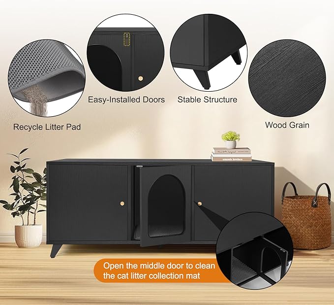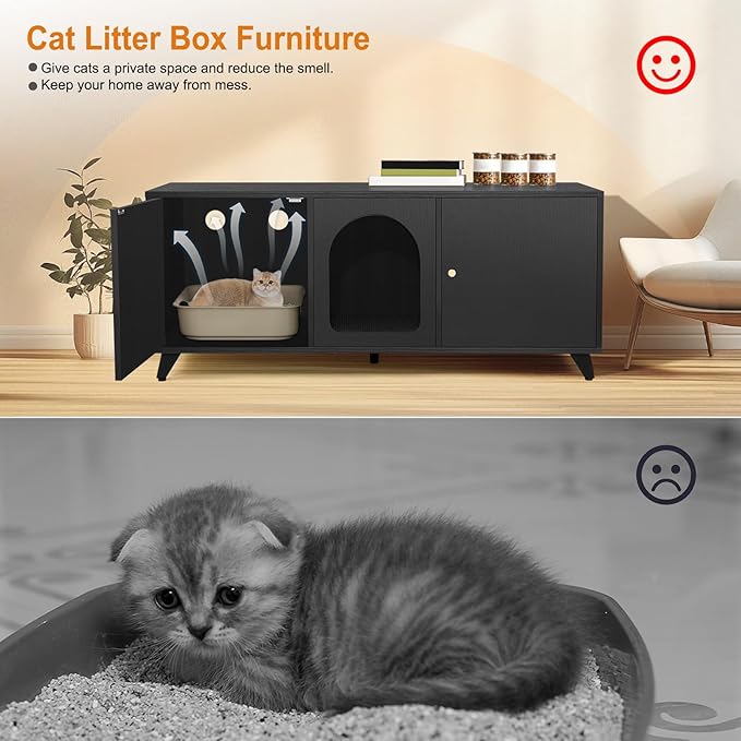 - Multifunctional Litter Box Furniture: This litter box enclosure can not only serve as a cat house or litter box, providing a warm and cozy environment for your cats, but also function as a side table, TV stand, nightstand, or bench.