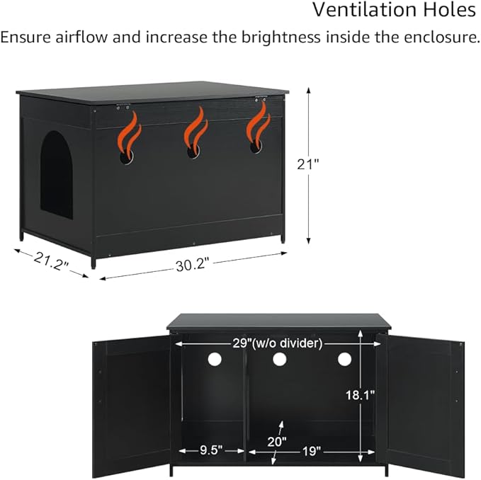 - DURABLE & LARGE: Build with strong and durable pressed wood with metal frame to provide a sturdy structure(Maximum support weight of the top is 185 lbs). Fits most size litter boxes - including extra-large automatic boxes, Breeze XL litter boxes and other high jumbo litter boxes. If you have a large cat, our enclosure is perfect for it.
