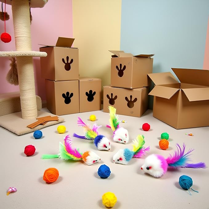 - INTERACTIVE DESIGN: Each mouse features vibrant colors and attached feathers that trigger your cat's natural hunting instincts