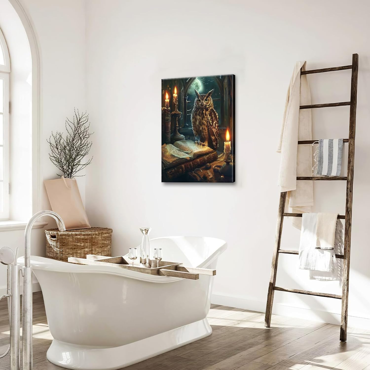 Owl Book Wall Art Vintage Canvas Wall Decor Prints Framed Painting Owls Pictures Gifts Artwork for Bathroom Living Dining Bedroom 16"x24"