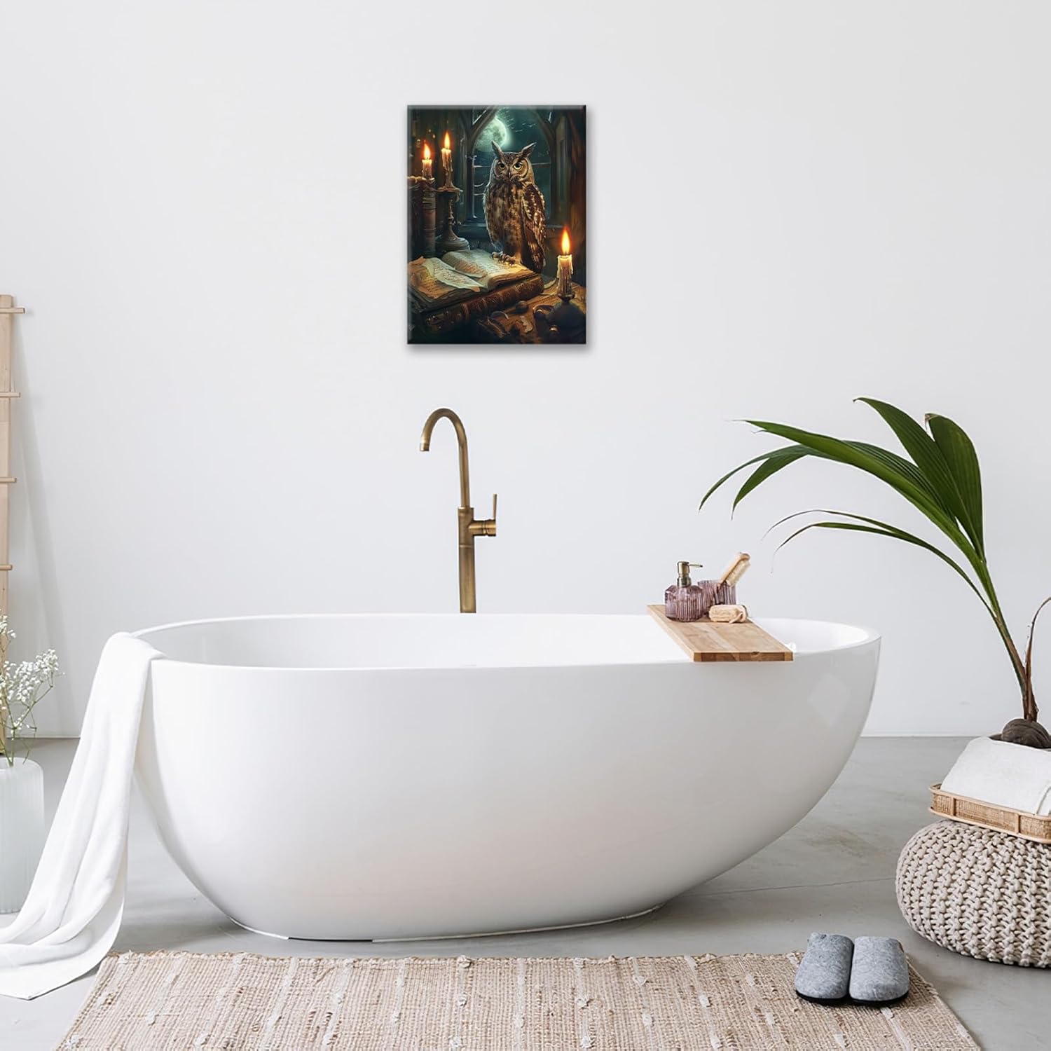Owl Book Wall Art Vintage Canvas Wall Decor Prints Framed Painting Owls Pictures Gifts Artwork for Bathroom Living Dining Bedroom 16"x20"