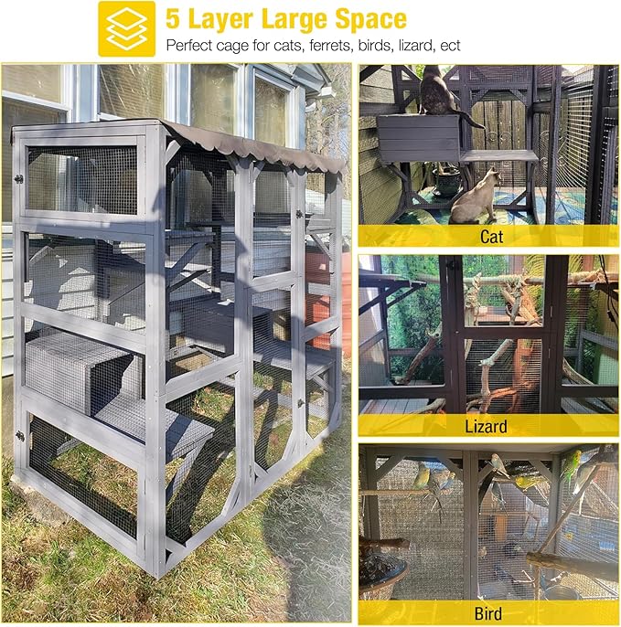 - Two Sleeping House: Fully enclosed cat catio with two spacious sleeping houses offer super soft and warm lounging spots, give your feline friends a luxurious napping experience