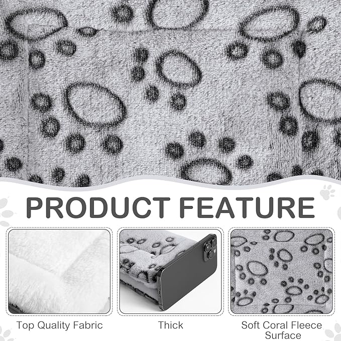 Haull 4 Pcs Waterproof Guinea Pig Bedding Winter Guinea Pig Bed Plush Cage Liners Soft Dog Cat Mat Reversible Winter Cozy Animal Pee Pad Hamster Bed Mat for Bunny(Gray Paw,13 x 10 Inch)