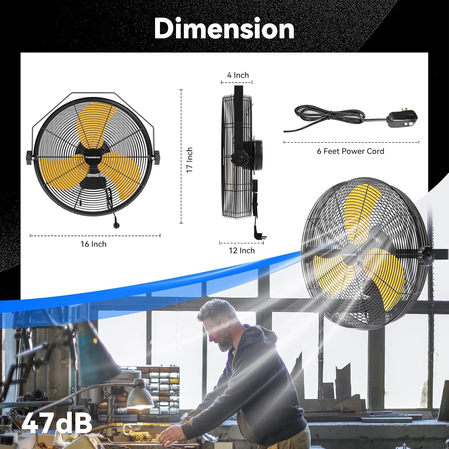 - 𝐇𝐞𝐚𝐯𝐲-𝐃𝐮𝐭𝐲 𝐒𝐭𝐫𝐮𝐜𝐭𝐮𝐫𝐞 - Industrial Wall Fan adopts industrial-grade heavy-duty construction, sturdy and durable. Zipper design makes operation more intuitive and simple, aluminum blades enhance wind output, rust-proof grille is safe to use and easy to clean. Extra long 6 feet + SJT waterproof power cord, 1/12 HP, 120V, 58 Watts, 60 Hz. Meets OSHA standards. UL safety certification