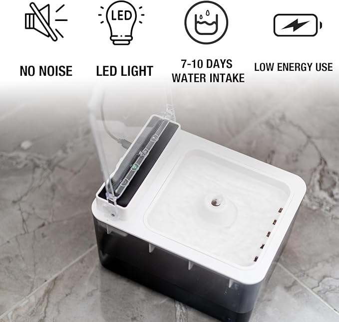 - Advanced Filtration: Equipped with a 6-stage filtration system that includes silver-ion infused filter balls, this feature effectively eliminates impurities, softens water, and prevents slimy buildup. Your cat enjoys fresh, clean water with every sip.