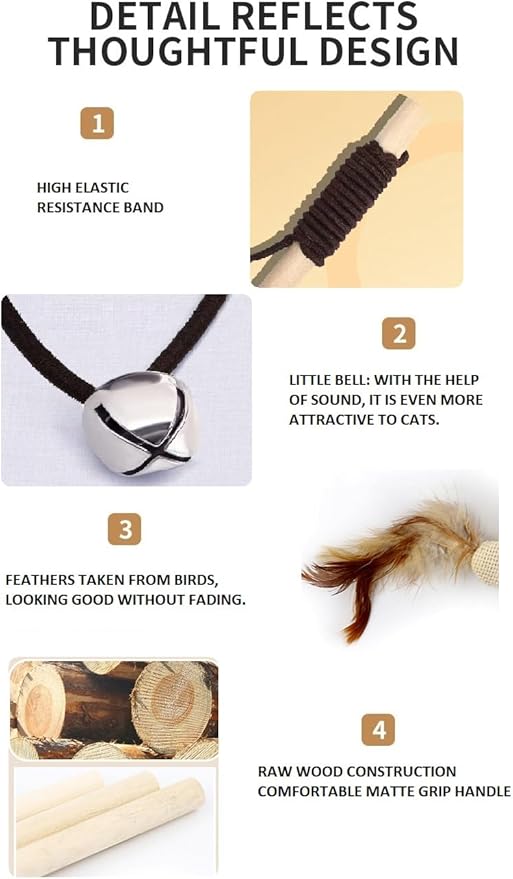 - INTERACTIVE DESIGN: Set of wooden wand toys with various teaser attachments including mice, bells, and feathers for engaging playtime with your cat