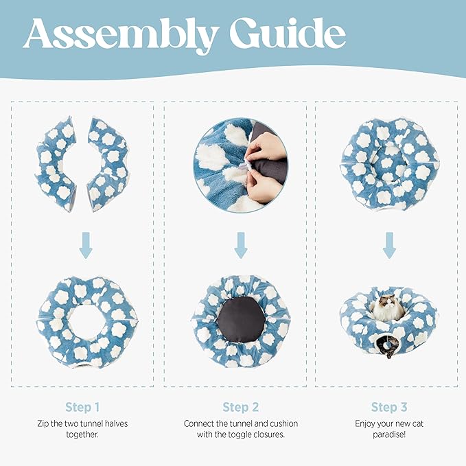 - Versatile 2-in-1 Comfort: Transform your pet's playtime and rest with Lesure's innovative 2-in-1 Cat Tunnel Bed. This design marries the excitement of a zip-together play tunnel with the serene comfort of a cozy nap spot, perfectly accommodating cats up to 15 lbs and small pets like rabbits or ferrets. Ideal for households with multiple furry friends, it offers a hidden play area and a tranquil sleeping space all in one.