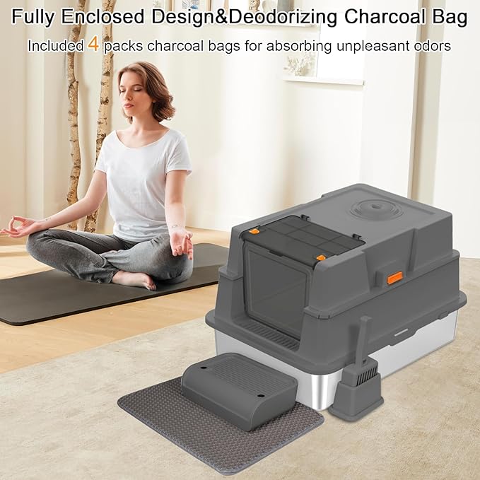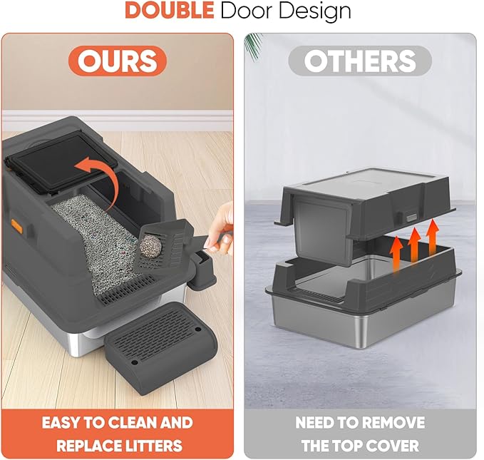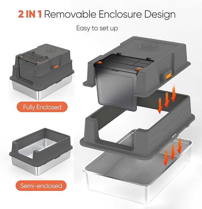 - 【2 IN 1 Removable Enclosure Design】① Semi-enclosed-Better ventilation and easy cleaning.②Fully Enclosed- Provides privacy room for your cat and has good odor control.Excellent sealing has no leakage.Choose to your cat's preferences. Also come with 4 packs charcoal filters.