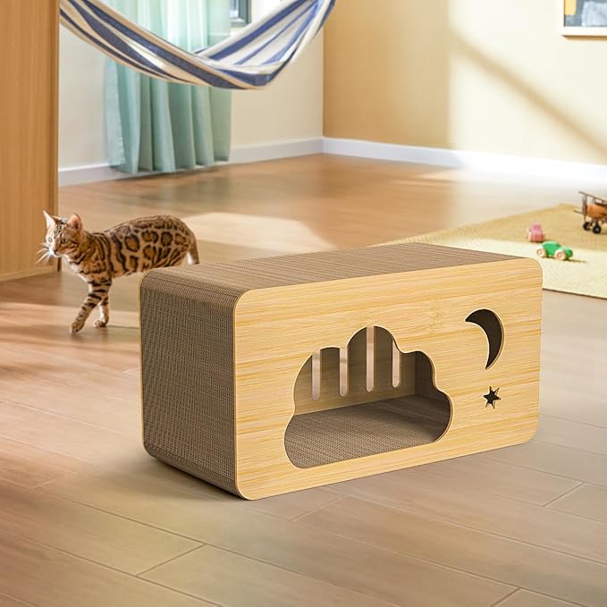 - 😺ankuliy cat scratching house is made of brand new corrugated cardboard, without any special odor, and has a good foot feel, which cats like. All sides of cat scratcher house available to scratch, it's a great new toy for any cats.