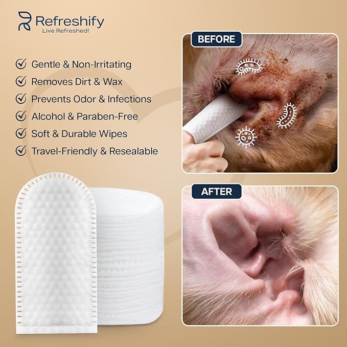 - SOOTHE ITCHY EARS & BANISH ODORS! Provide fast relief for your furry friend with our specialized dog ear cleaning wipes. Designed to calm irritation and eliminate unpleasant smells, these wipes help manage discharge, making them an essential part of your pet's comfort and hygiene routine.