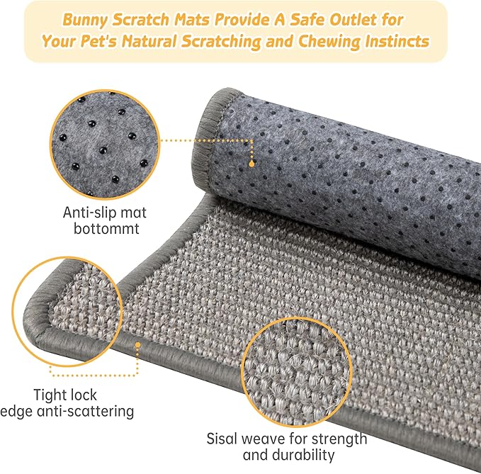 - Versatile Use Rabbit Scratch Mat :Functions as a cage liner, sleeping mat, or play surface,Natural sisal mats ideal for bunny scratching, resting, and foraging needs,breathable and great for hot days