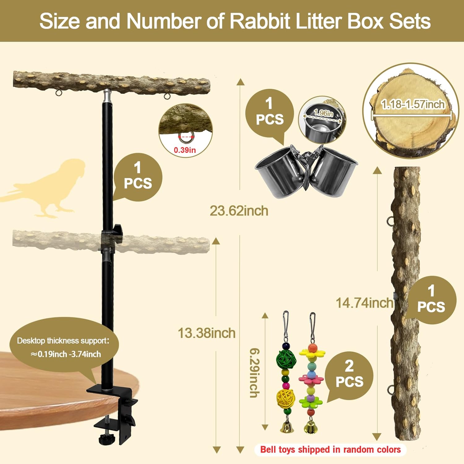18-27 Inch Height Adjustable Bird Perch Pepper Wood Desktop Bird Training Perch Stand with Feeding Cups and Swing Toy Parakeet Perches Indoor and Outdoor Parrot Stand for Small to Medium Birds