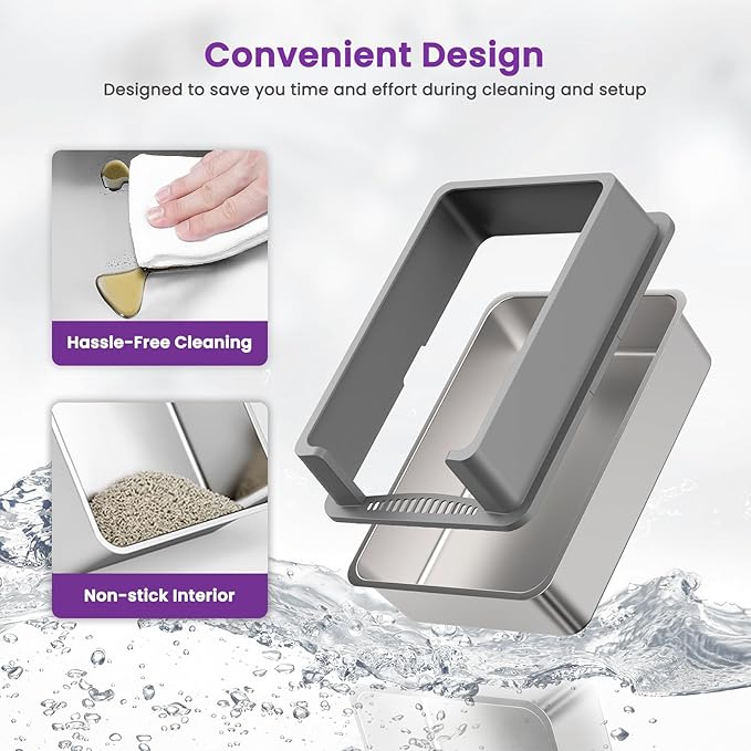 - 【Durable Stainless Steel – Easy to Clean】This extra large stainless steel litter box is rust-resistant, scratch-proof, and non-stick. Simply wipe or rinse for hassle-free cleaning. Unlike plastic, it won’t absorb odors or stains.