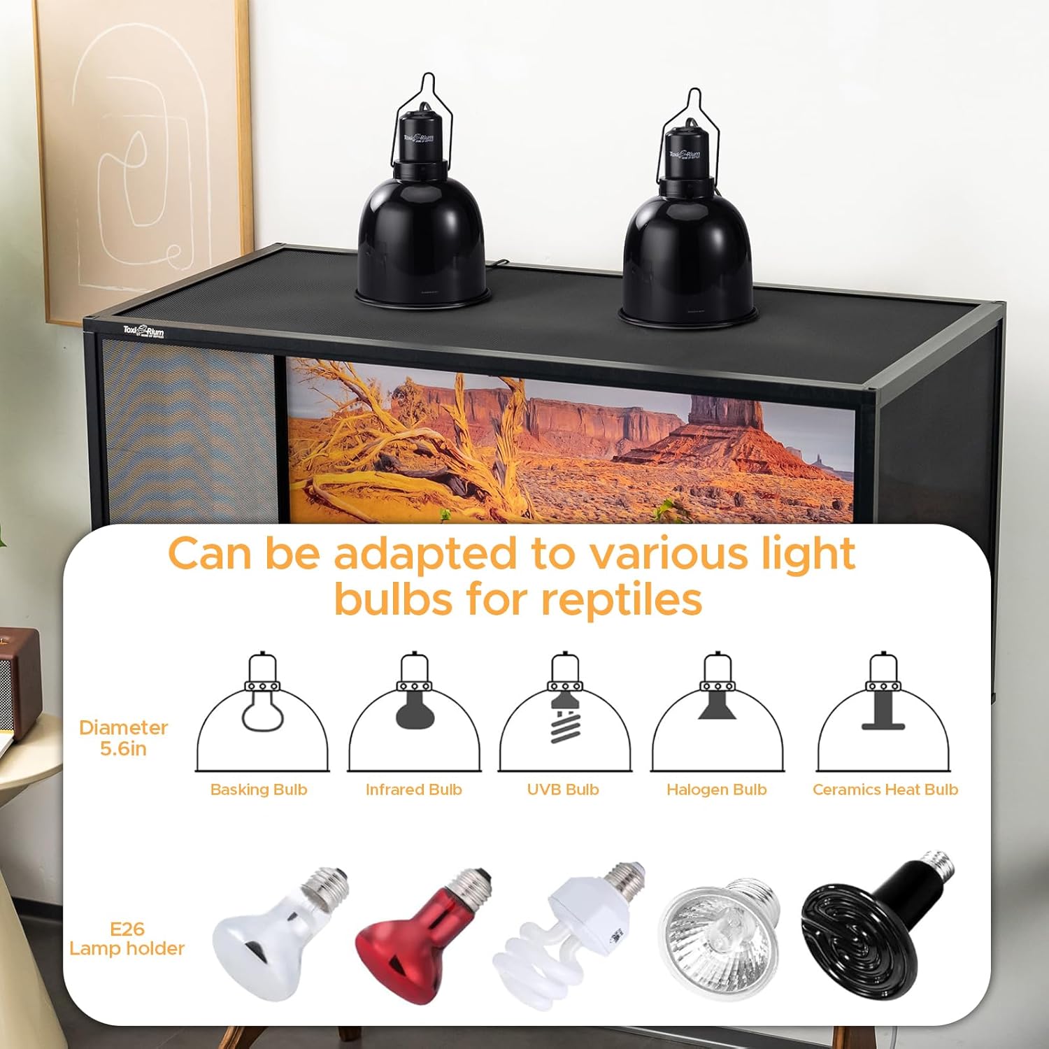 - Works with All Your Bulbs: Perfect for UVA, UVB, heat lamps, or energy-saving bulbs (up to 100W, max 5.9-inch length), giving you flexibility to meet your reptile’s specific needs.