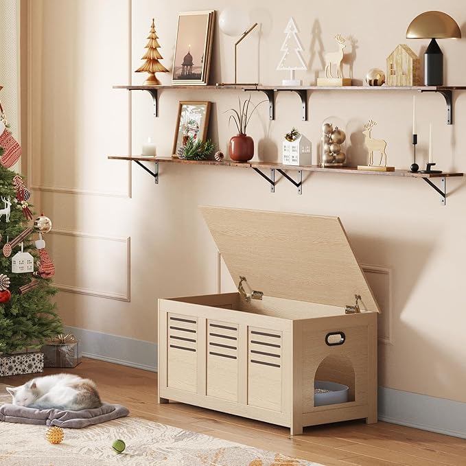 - 【More Privacy, More Love】Cats are independent and also need some private space. The sturdy and stylish cat box cabinet allows your cat to find a sense of security and belonging in a comfortable environment. The litter box enclosure will save you from the trouble of scattered litter and pervaded smell