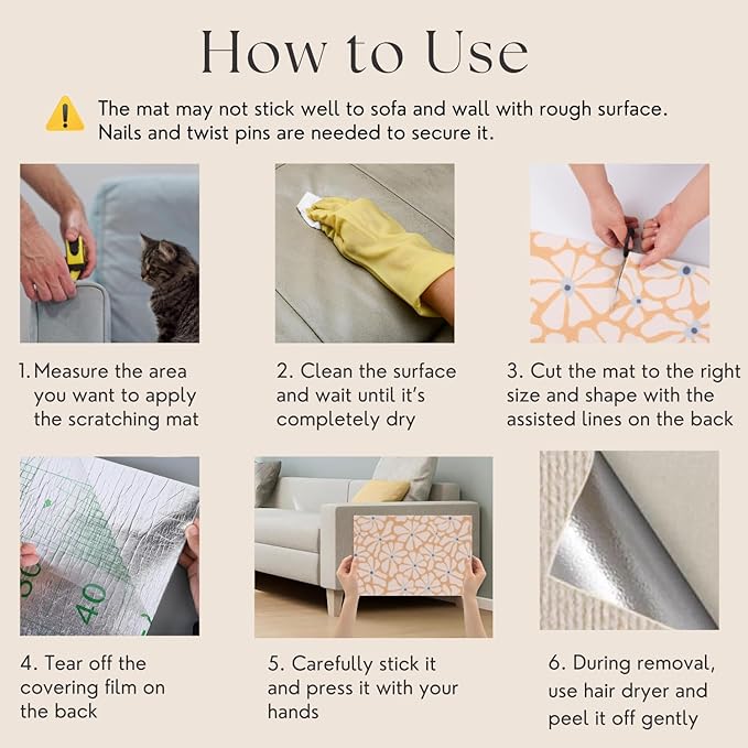 - Removable and Reusable: The cat scratching mats are easy to use, simply peel up the corner and gently remove, leaving no residue or mess behind. Reapply as needed.