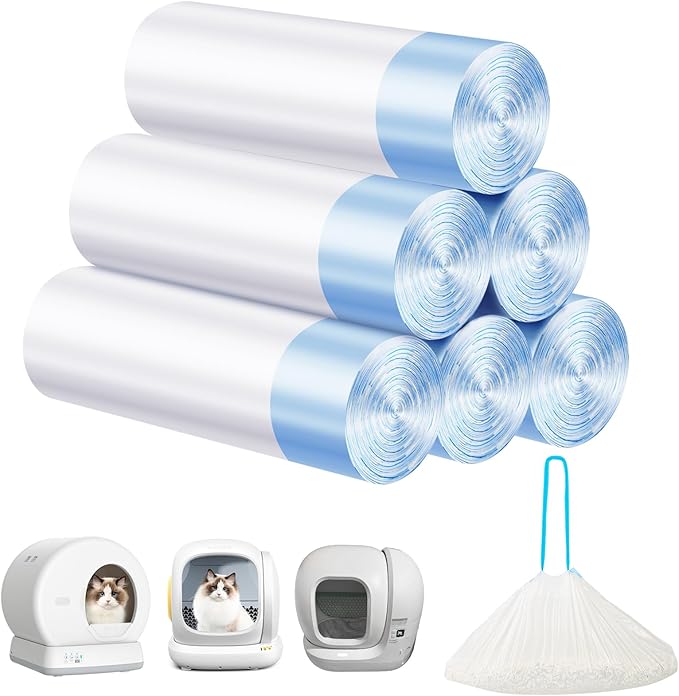 - 【Perfect Fit for Automatic Litter Boxes】These cat litter liners Sized at 21.65"x11.8" are crafted to fit most automatic litter boxes seamlessly, offering efficient waste collection and ensuring a smooth cleanup process. The convenient drawstring design allows for quick, secure disposal—just remove, tie, and toss. These litter bags make maintaining your cat’s litter box effortless, keeping your home clean and odor-free.