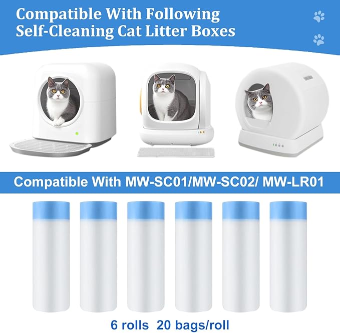 Thicken Cat Litter Bags 120 Pack, cat litter box liners, Leakproof Poop Bags & Waste Bags - Ultimate Odor Control and Leakproof Design,6 Rolls Drawstring Trash Bags for Automatic Litte(18x12.6 inches)