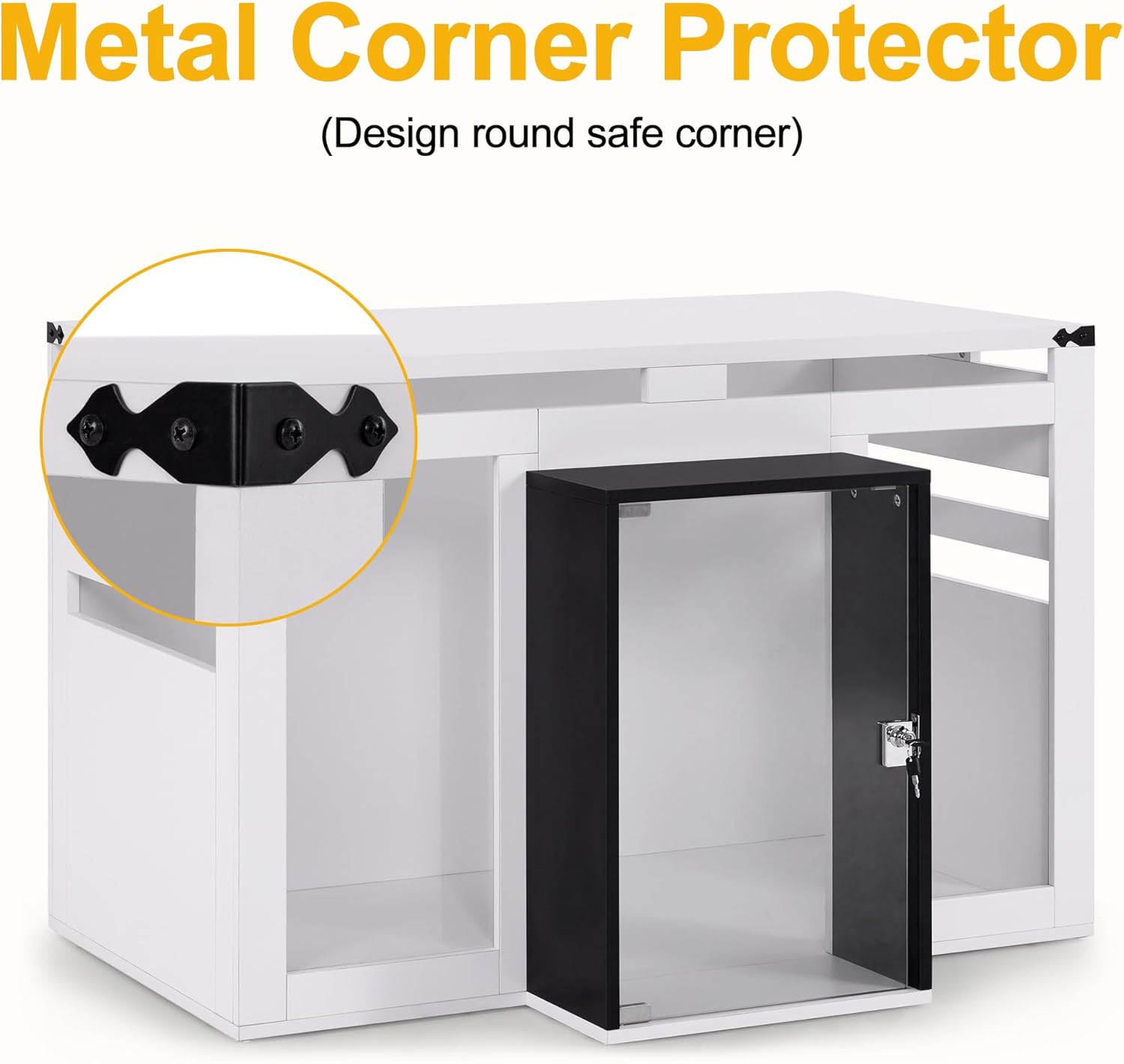 - Metal Corner Protectors: The dog crate end table features metal protectors to safeguard the corners from damage