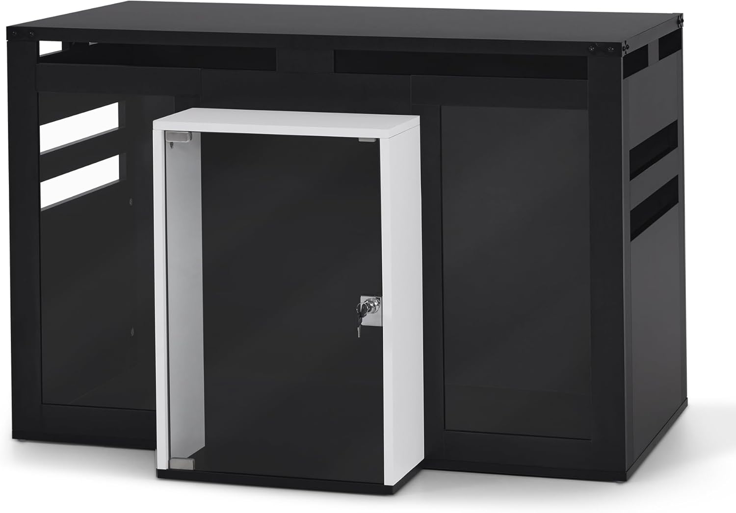 Lovupet Wooden Dog Crate Furniture, Villa Style Dog Kennel for Medium Breed with Glass Door and Acrylic Panels, GC34 (Black)