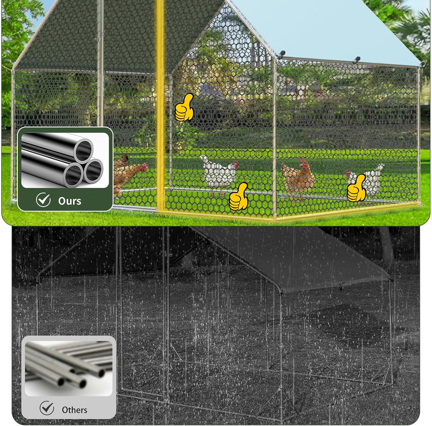 - 【Large Space for 5 Chickens】: The metal chicken coops measures 9.2’Lx6.23’Wx6.4’H and can accommodate around 5 chickens at a time. 6.4' height provides plenty of space for chickens to move around during the day