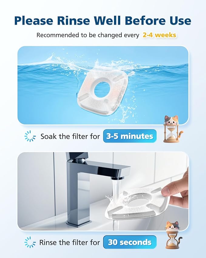 - User-Friendly Design : Our Filters for veken are individually sealed for freshness and come with easy installation instructions. Simply soak the filter for 5 minutes before use and enjoy hassle-free maintenance that keeps your pet’s water consistently fresh.