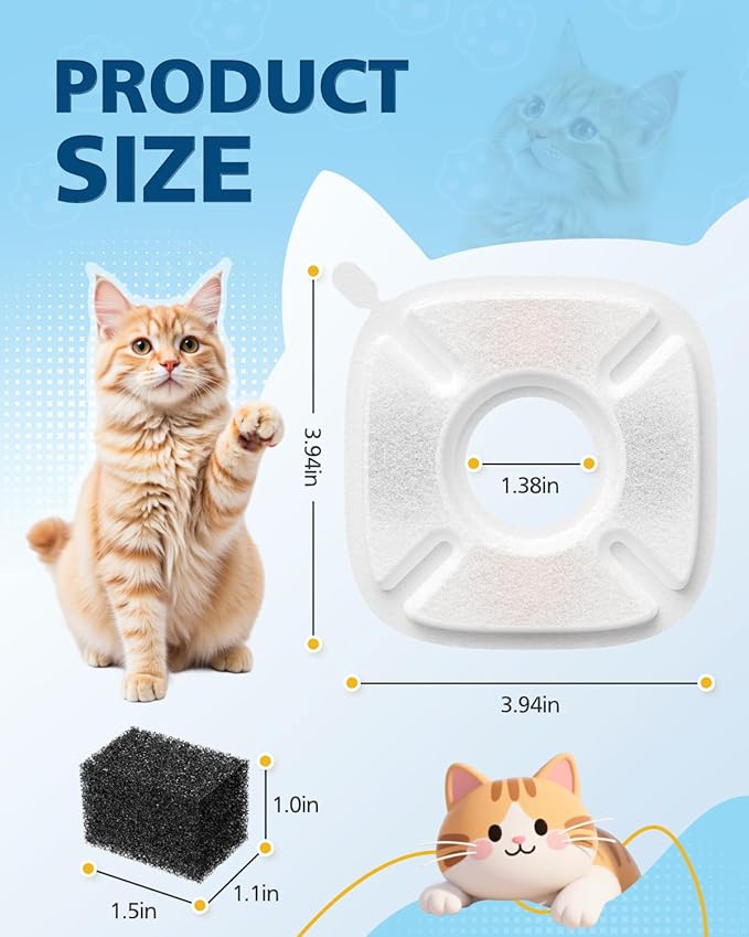 - Convenient Multipack Bundle : Each water fountain filters set for veken includes 25 replacement filters and 25 pre-filter sponges, offering a complete filtration solution. This bundle simplifies maintenance by allowing simultaneous replacement of both components during routine cleaning.