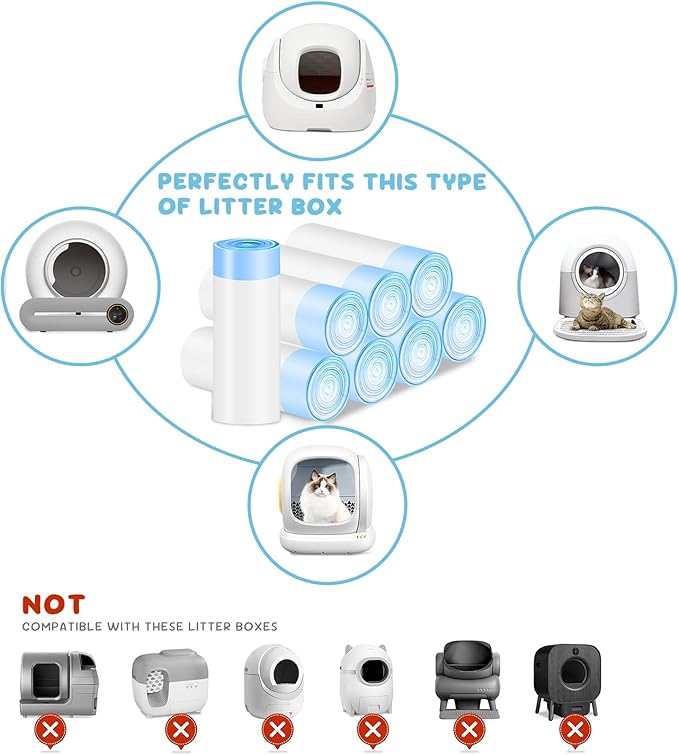 - CUSTOMED FIT FOR AUTOMATIC LITTER BOXES: Get rid of cat waste easily and quickly with the cat litter bags customed fit for Petcpu automatic cat litter box waste bags. Ideal for most small automatic self-cleaning litter robot box. Each waste bag dimension: 17.7 x 19.7 Inches. Warm Remind: The side length of the liner bag's mouth is less than 35.43 inches.