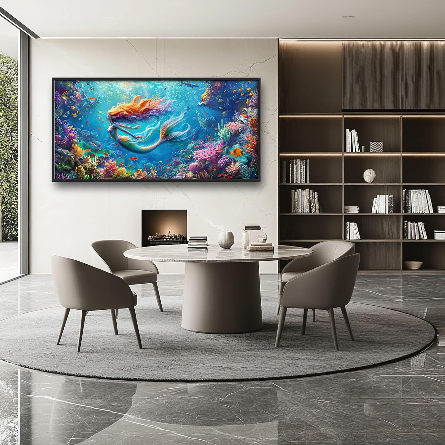 Quorin Mermaid Large Wall Art Sea Ocean Mermaid Pictures Colorful Undersea Wall Decor Canvas Print Painting Artwork for Bathroom Living Room Bedroom 60L x 30W