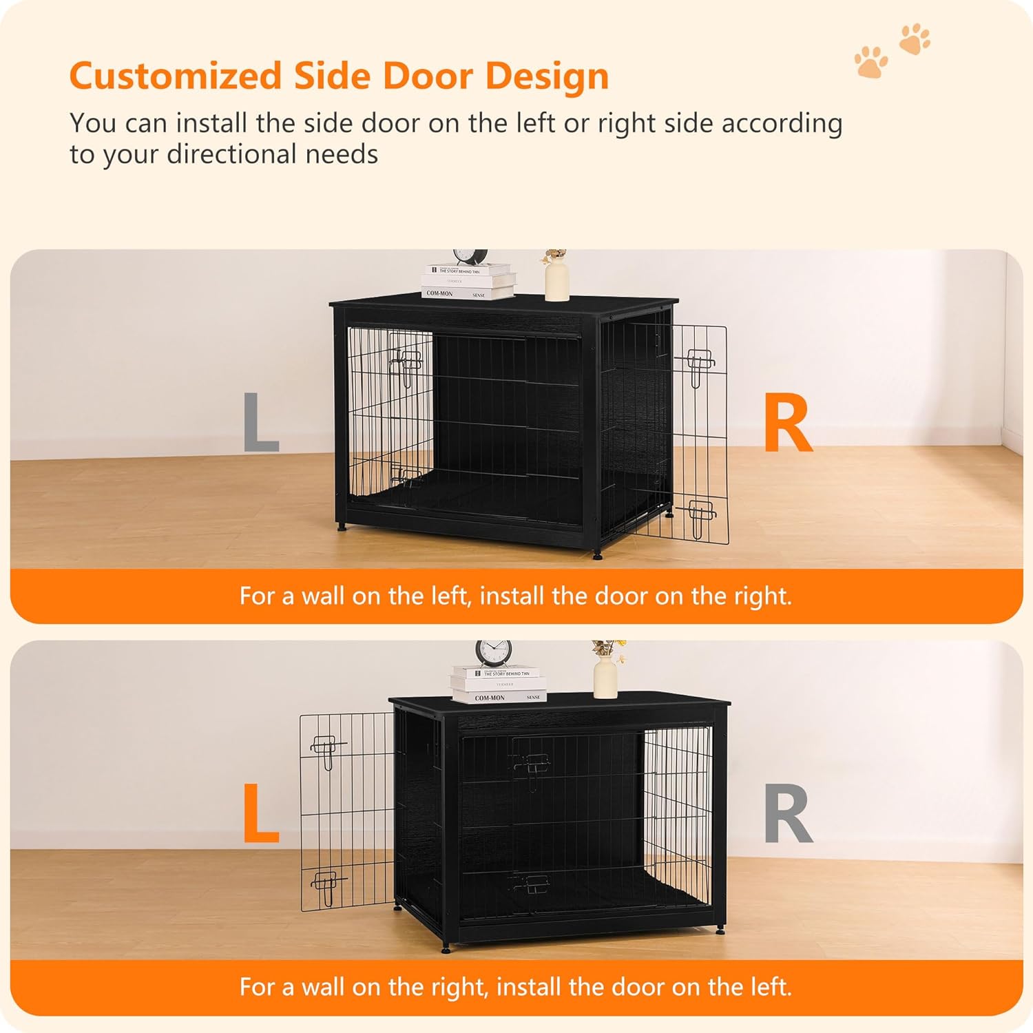 DWANTON Dog Crate Furniture with Cushion, Wooden Kennel Table with Double Doors, Indoor Dog House, Large Size, 38.5" L, Black