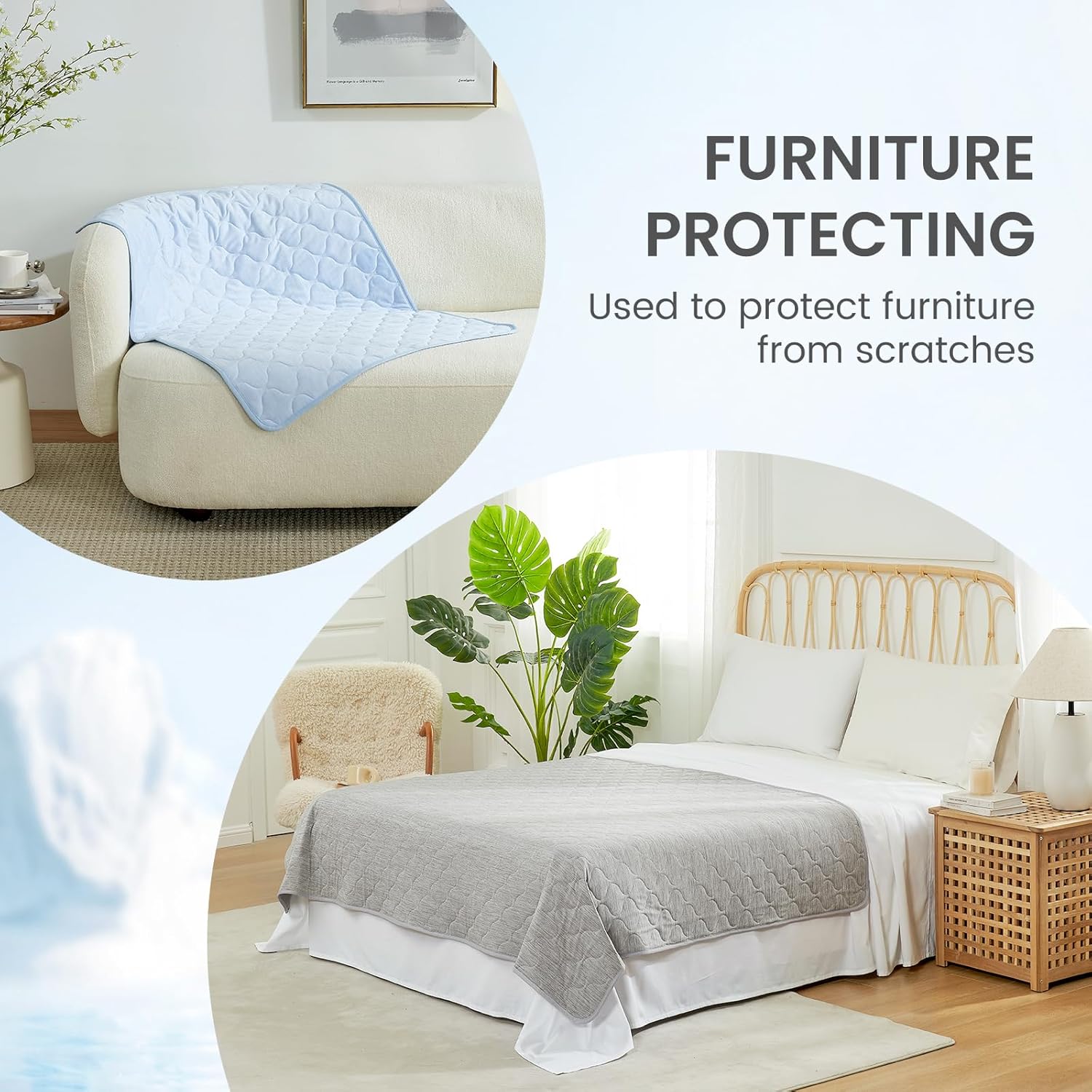 - INTEGRATED LEAKPROOF PROTECTION – Safeguards Your Furniture:Designed with a built-in leakproof barrier, the mat effectively prevents urine, drool, or moisture from seeping through to your furniture, crates, car seats, or flooring. Whether placed on a sofa, bed, or inside a pet crate, it provides reliable protection to keep your living space clean and odor-free.