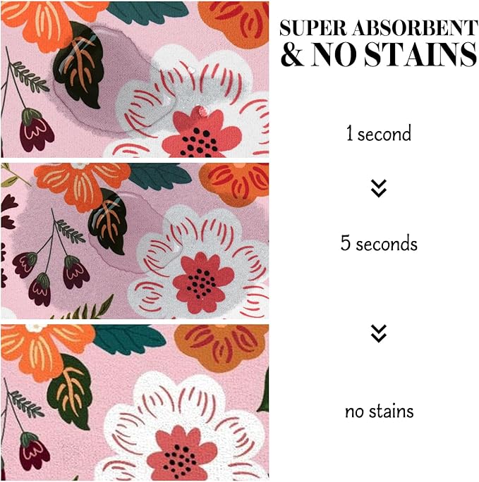 - Super Absorption: The dog mat for water bowl can absorb spilled water without leaving traces and dry quick, avoid wetting pet paws even for messy drinkers. And it does not attract pet hair like traditional silicone dog bowl mat.