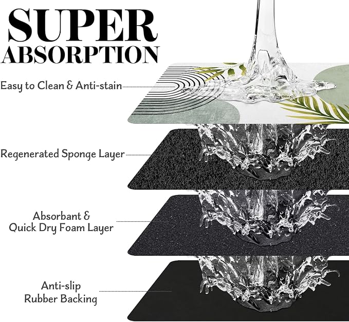 - Super Absorption: The dog mat for water bowl can absorb spilled water without leaving traces and dry quick, avoid wetting pet paws even for messy drinkers. And it does not attract pet hair like traditional silicone dog bowl mat.
