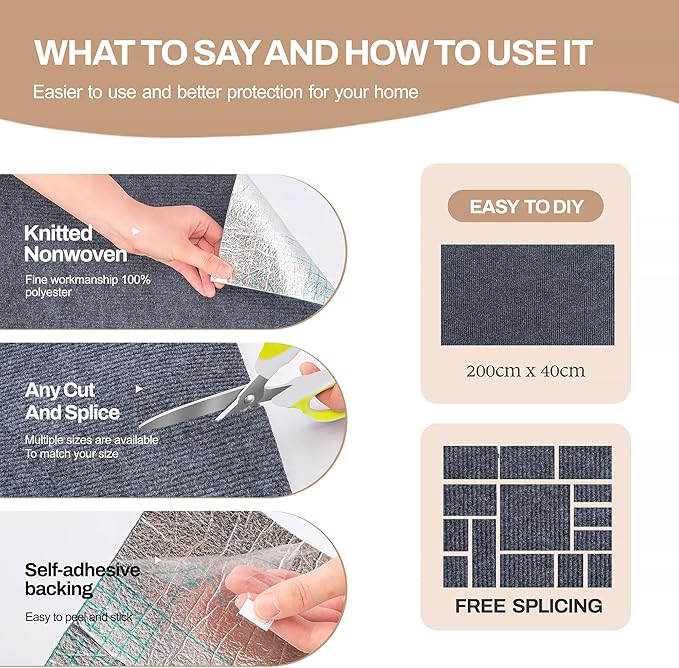 - 【Self-Adhesive Convenience】This cat carpet mat is designed with a self-adhesive backing that is securely fastened using an environmentally friendly adhesive. Simple to install, simply peel off the backing and stick it to the desired surface to ensure a secure, hassle-free fit and maintain a firm grip.We also have additional eco-friendly adhesive and screw nails to help you better choose the scenarios you want to use.