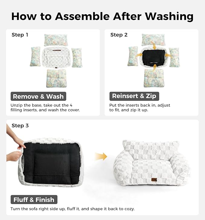 - Removable Machine Washable Cover: Cleaning is easy with the zippered removable cover. Simply unzip, remove the inner filling, and toss the cover into the washing machine to keep your pet's bed fresh, hygienic, and free from fur or odors.