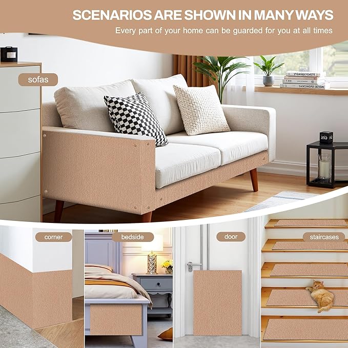 - 【Multi-Purpose】This mat can not only be used as a carpet replacement but also suitable for a variety of cat-friendly spaces, including cat tree shelves, walls, wall-mounted furniture steps and sofas, providing a multifunctional solution for cat owners. It enhances the cat-friendly environment in your home while maintaining a clean, scratch-free living space.