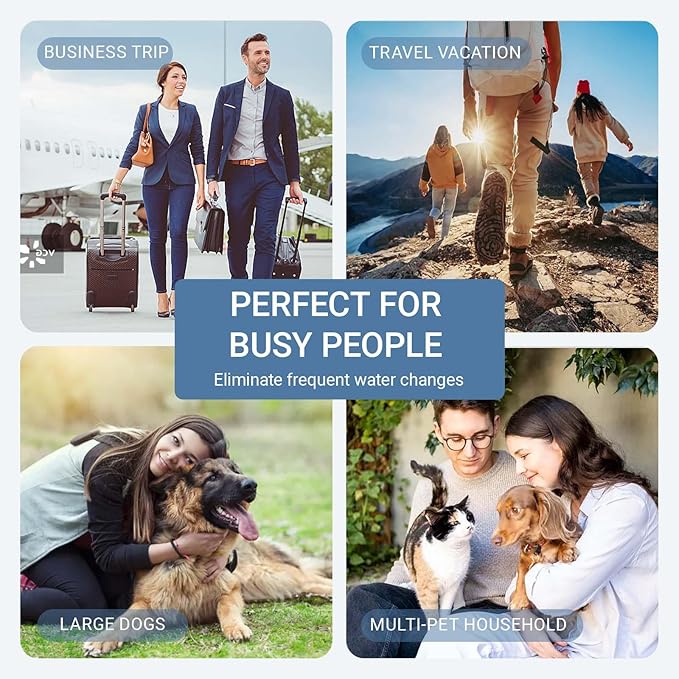 - 【Perfect for Travel & Busy Pet Parents】Going on a trip? Working long hours? This extra-large pet water dispenser provides long-lasting hydration so you can travel worry-free. Ideal for dog owners, cat lovers, and pet sitters who want a low-maintenance waterer for dogs and cats