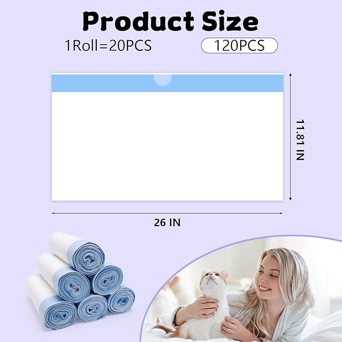 120 Count 26" x 11.8" Cat Litter Box Liners for Fsitego and Fumoi Self Cleaning Litter Box, Extra Thick Heavy Duty Cat Litter Bags Replacement, 3-4 Gallons of Capacity