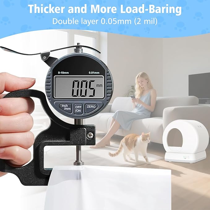 - Heavy-Duty, Tear-Resistant Material: Made with 2.2mil LDPE, these litter box liners are 3x stronger than standard cat litter bags. The litter box liner is leak-proof, puncture-resistant, and capable of holding up to 22lbs+, ensuring a mess-free disposal process for MeoWant litter bags, litter robot bags, or any automatic litter box bags system.
