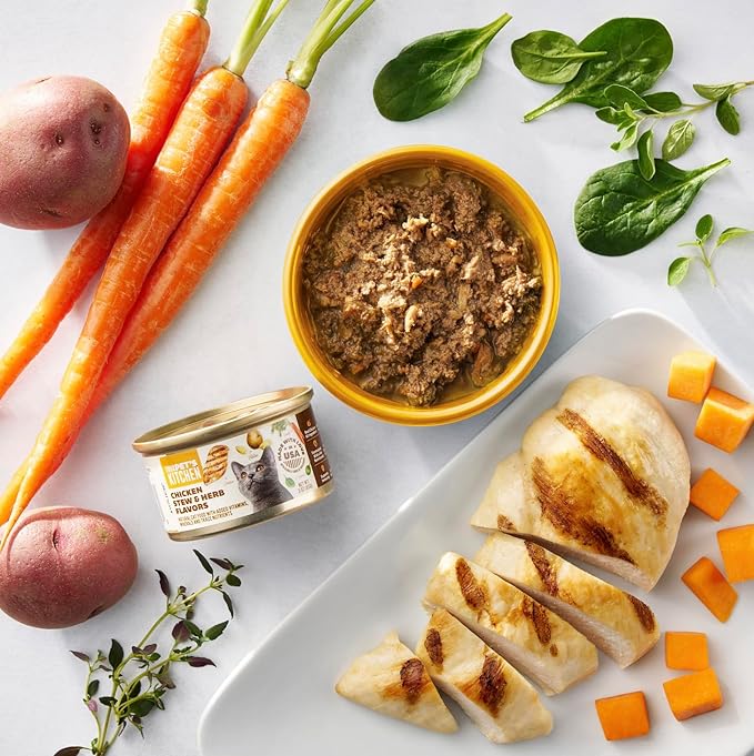 YOUR PET'S KITCHEN Canned Wet Cat Food, Chicken Stew & Herb Flavors - 3 oz Cans (Pack of 24), Made in The USA with Real Chicken