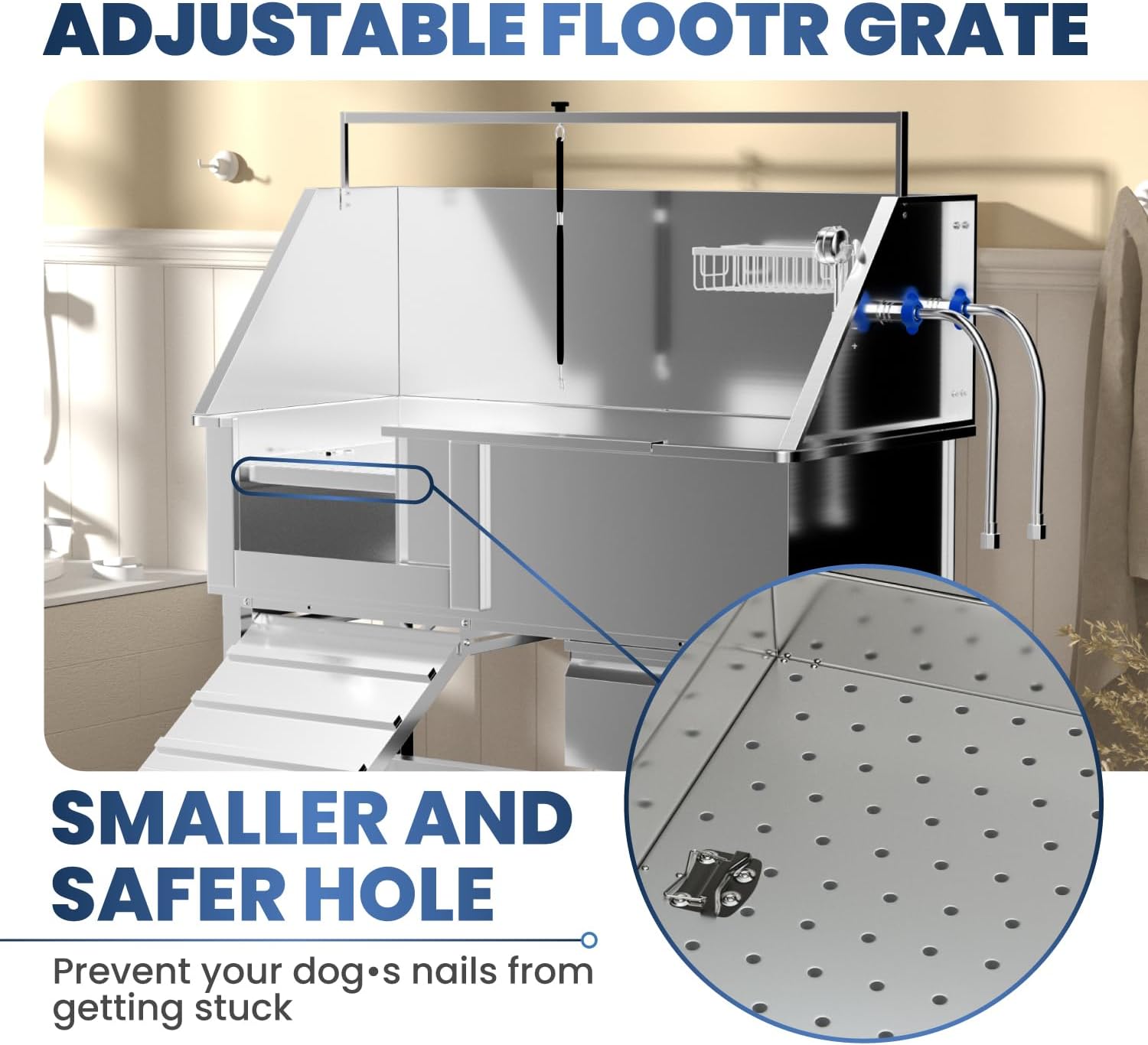 Professional 46" Dog Washing Station, Stainless Steel Dog Bathing Station, Height Adjustable Dog Wash Station, Storage Drawer, Upgrade Parts, Home, Commercial (Left Ramp)