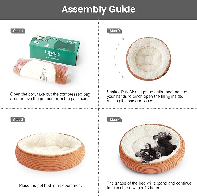 - Design Features: Love's cabin dog beds feature nest-like walls, round pet bed offers a safe, warm cozy place for small dog to snooze.In order to better maintain the shape of the donut nest,our interior filling is 25% more than most competition.
