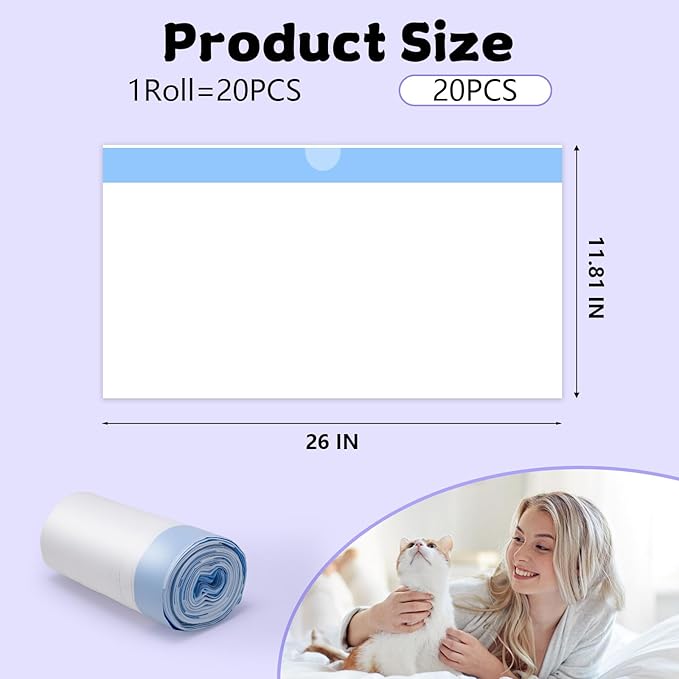 20 Count 26" x 11.8" Cat Litter Box Liners for Fsitego and Fumoi Self Cleaning Litter Box, Extra Thick Heavy Duty Cat Litter Bags Replacement, 3-4 Gallons of Capacity