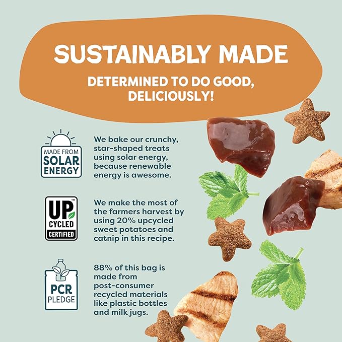 - Cat Treats That Support Digestive Health: Chillin has never been easier or tastier! Our fresh Shameless Pets Crunchy Cat Treats (Catnip N Chill) may cause a little fun followed by a trip to the couch. These crunchy, star-shaped, bite-sized treats are made with chicken and chicken liver, sweet potatoes, catnip and packed with both pre & probiotics, which help support digestion! Includes one 2.5 oz bag.