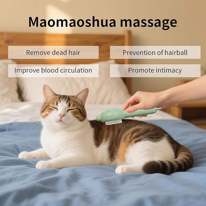 - Durable & High-Quality Material: This cat brush for shedding is crafted from ABS plastic and stainless steel pins, ensuring long-lasting durability. Each massage needle is tipped with soft white silicone for added safety and comfort