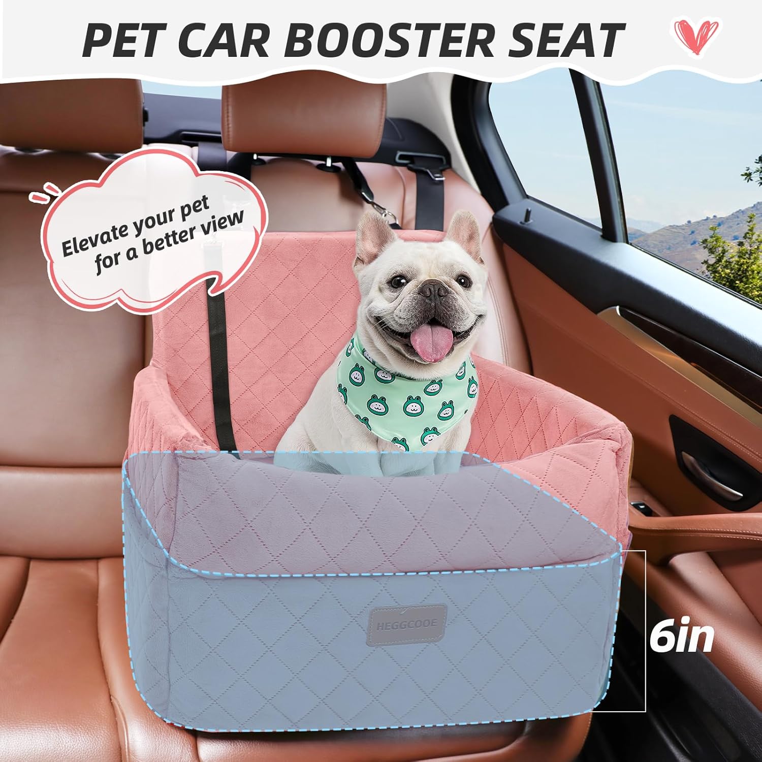 - Elevated Dog Car Seat: Our car seat for dogs raises your pet up to 6 inches above the car seat, giving them a beter view out the window and relieving anxiety during car rides. It comes with two safety belts that attach to your dog's harness to prevent them from jumping out the window, providing your dog with great safety and comfort