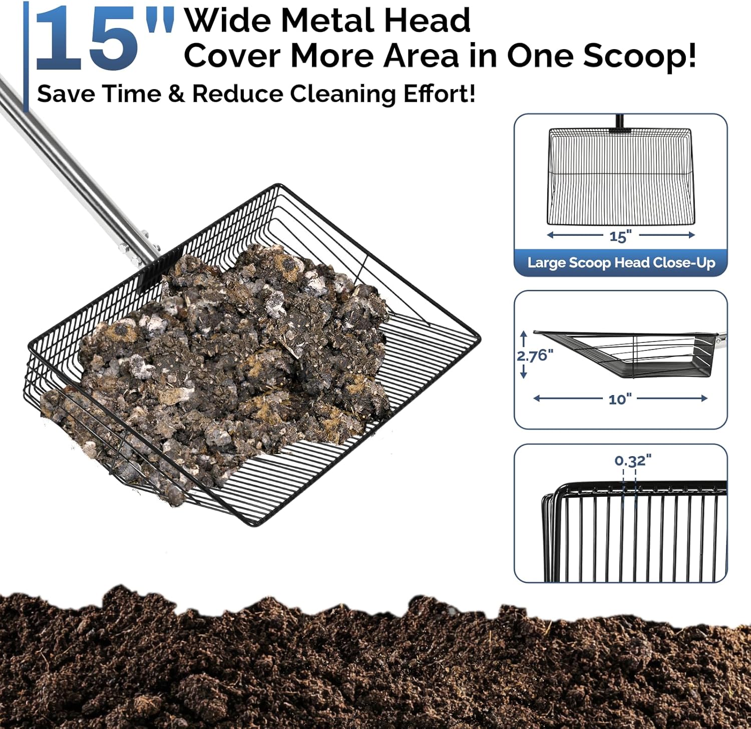 - 𝟓𝟎% 𝐖𝐢𝐝𝐞𝐫 𝐓𝐡𝐚𝐧 𝐒𝐭𝐚𝐧𝐝𝐚𝐫𝐝 - 𝐂𝐥𝐞𝐚𝐧 𝟑𝟎% 𝐅𝐚𝐬𝐭𝐞𝐫 𝐢𝐧 𝐋𝐚𝐫𝐠𝐞 𝐂𝐨𝐨𝐩𝐬: Dominate big cleanups with our 15-inch chicken coop scooper – 50% wider than standard 10-inch models! Sift 2x faster in deep litter, sand, or hemp bedding. Clean a 200 sq.ft coop in 15 minutes (vs. 25+ mins with smaller scoops). Farmers’ #1 time-saver!