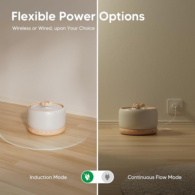 - Dual Water Modes - The newly added induction mode with advanced radar sensor delivers a 20-second flow only when senses your pet within 5feet/150cm, preserving power while encouraging your pet to take a sip.