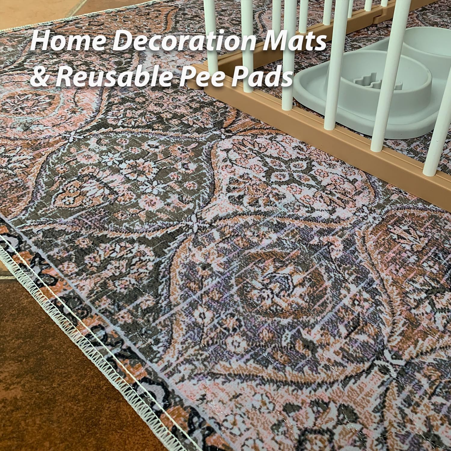 nunubaby Washable Pee Pads for Dogs, Stylish, Non-Slip and Leak-Proof Pee Pads. Reusable Potty Pads for Dogs for Crates and Floors.(Brown/Multi, 24" x36")